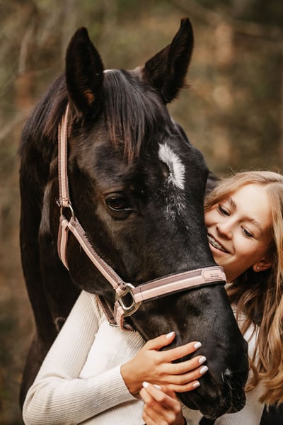Our 10-year-old mare Destiny is looking for a loving, suitable home with experienced horsepeople. She is a charming horse – sensitive, intelligent, and curious – and brings an incredible amount of joy. I have known her since I was 15, having taken her over from our stable owner, and she has been a constant companion ever since. As I am now moving abroad, it is incredibly difficult for me to find a new home for my beloved Destiny, but I wish for her to find someone who loves and appreciates her just as much as I do. In handling, Destiny is a truly reliable partner. She is well-versed in grooming, hoof care, ground work, and lunging. She is familiar with dogs, playful children, and even tractors pose no problem for her. She feels most comfortable in a pasture-based environment or in a paddock box with plenty of turnout, as movement and herd life visibly make her happy. Under saddle, Destiny demonstrates her versatile talent: In dressage, she is solidly trained. She walks and trots calmly; when asked to canter, she sometimes tests her rider with a small buck, but with experience and patience, this can be managed well. Even my mother, who is not an experienced rider, can ride her in walk and trot without issues. She enjoys jumping, skillfully sorting her legs and requiring minimal support. Flying changes are no problem for her either. She is also accustomed to riding out. Although she hasn't been regularly ridden outdoors recently, she quickly regains confidence with the right company. She was also successfully shown in show jumping competitions in the past. However, I do not have the opportunity to pursue this further, and it is not my priority. Destiny is seeking a rider with sensitivity, love, and experience – someone who is firm but gentle. Whoever wins her heart will gain a loyal partner who works enthusiastically and makes her humans very happy. She will only be placed with someone who provides her with a proper, loving, and respectful environment. Saddle, bridle, and additional equipment are included if desired.