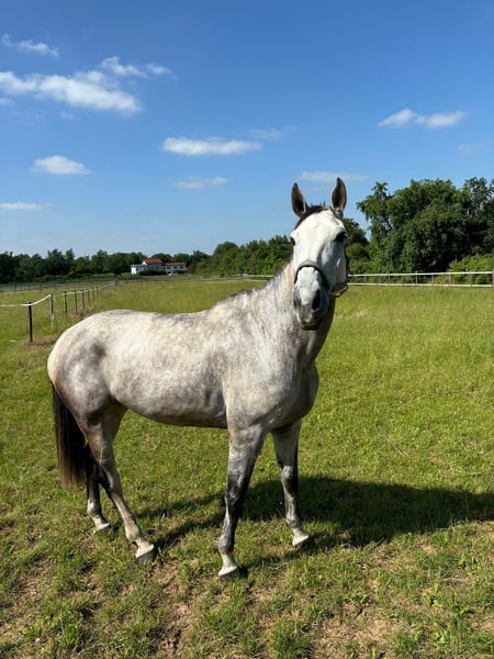 Wir verkaufen diese selbstgezogene Stute die nach einem Boxenunfall nicht mehr im Sport gehen soll. Ist aber reitbar und hat keinerlei akute Behandlungen oder Einschränkungen . Gerne als Zuchtstute . Platz ist ausschlaggebend. Abstammung in Fotos. Selbst auf Grund des Unfalls bis L eingesetzt, vermögen aber bis S. Stockmass 173 Alter: 10