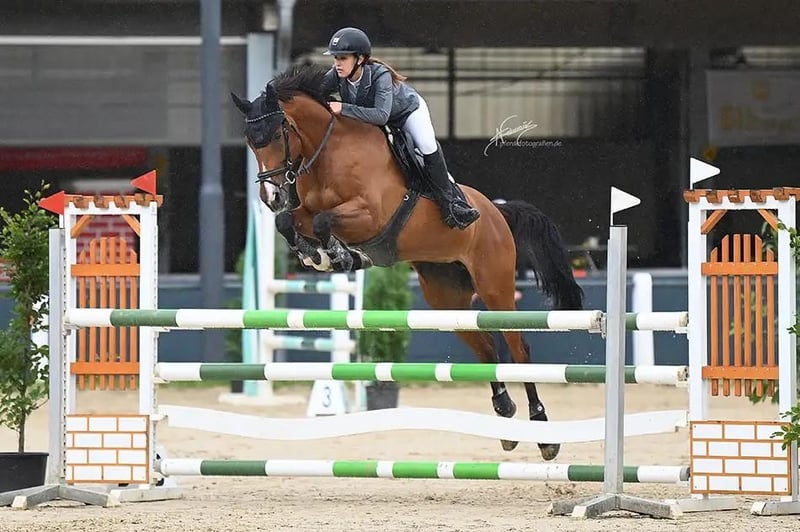 With a heavy heart, we are parting with our wonderful mare due to studies. She is ideally suited for riders who want to engage with their horse in a versatile and enjoyable way. She is 11 years old and approximately 1.60m tall, but she covers ground very well. Our mare is well-trained, absolutely calm, and easy to ride. Daily work, both in jumping and dressage, is simply fun with her. She is uncomplicated in every way - whether it’s loading, out on the trails, with the farrier, or in handling with children. She manages everything confidently and calmly. She has been placed up to L-level in jumping and has very good quality, but requires a secure rider in jumping and is not a self-starter in the course, which is why we are primarily offering her as a high-quality leisure horse. The mare has an incidental finding, which, however, does not restrict her in any way or has ever restricted her. We are looking to place her exclusively in a loving 5-star home where she will continue to be supported and appreciated.