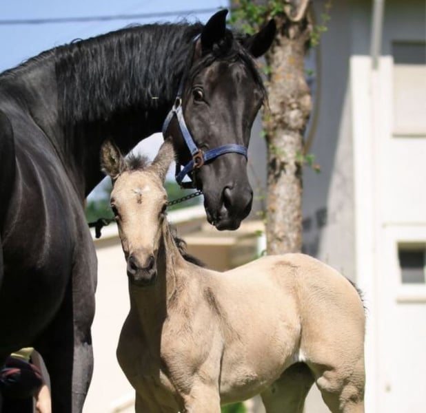 Beautiful Mare Looking for the Perfect Home For sale is a stunning, well-handled 11-year-old dark chestnut mare. She is very calm and friendly in handling, recently even ridden by a 13-year-old girl. Fortunately, she does not display stallion-like behavior around other horses. Under saddle, she has a good amount of energy but has never lost a rider, making her suitable for experienced riders but not for beginners or overly nervous riders. She has been successful in dressage competitions at levels L and L**. She has previously foaled two wonderful foals at ages 4 and 9, including a warmblood-colored foal, making her also interesting for breeders. She has always taken to insemination on the first attempt, had trouble-free foaling, and has been a very caring mother. Since she is somewhat nervous at competitions, I would prefer to rehome her to a leisure rider seeking a high-quality leisure horse for fun. We regularly traveled for training sessions off-site, which was never an issue. She is comfortable riding alone or in a group in the field. She has plenty of go but remains manageable at all times. Last year, Elise underwent a fetlock joint surgery and has since been barefoot and back in training. The surgery revealed no issues. I am happy to provide further details regarding her health upon serious interest. She loves groundwork and greets her handler daily with a nicker. My ideal home for her would be a five-star environment with daily turnout. She is outside all day at my place. She has previously been part of a herd, as well as kept alone, and has adapted well to all situations so far. If you are looking for a motivated, very personable horse for daily riding, Elise could be your dream horse. We look forward to meeting you if you are interested.