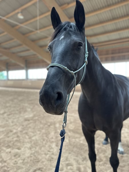 With a heavy heart, I am considering offering my beautiful mare Perla to experienced horse people if the right home is found. She stands 16.1 hh, is 11 years old, and is sired by Lord Nobel out of Fashion S. She is a family member and is familiar with children, strollers, dogs, tractors, and other everyday sights. She has been ridden both in the riding arena and in the indoor school, but she always preferred hacking out. She is not a reliable riding horse and will not be sold as a riding horse, but rather as a companion animal. I will only let her go if she finds a dream home. She is very well-trained in groundwork. I can easily imagine her as a companion horse with plenty of turnout or with someone who enjoys groundwork and does not focus primarily on riding. She has a condition in the cervical spine. Horse experience is essential! She is familiar with box stall housing with turnout and, in summer, 24/7 pasture access. She also knows an open stable. Currently, she is in a herd of mares. She is barefoot. Please only contact me if you are genuinely interested. Priority for the right home over price! My main concern is finding a suitable home for Perla, not the price.