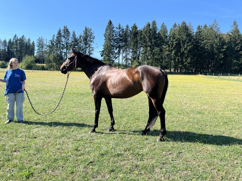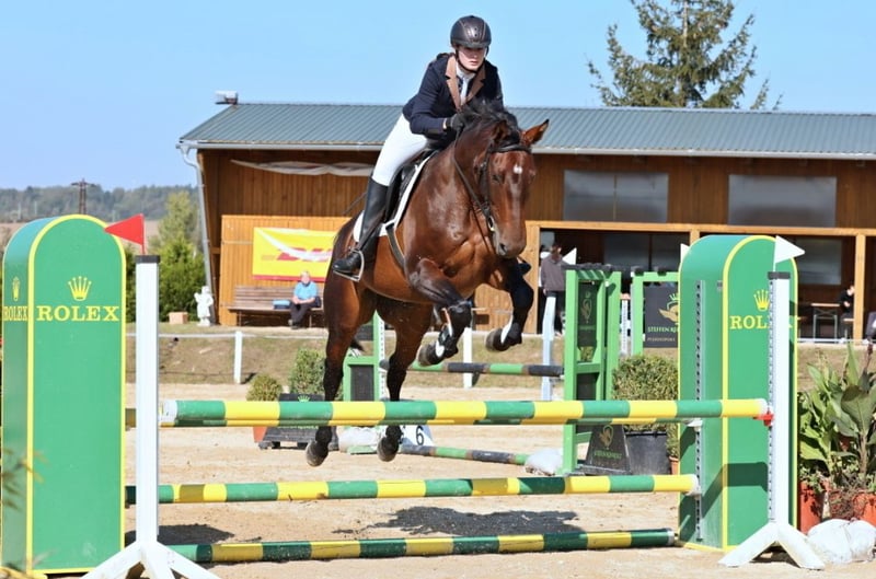 We are offering for sale a beautiful 12-year-old Hanoverian mare. She is an excellent choice for both sport and recreational riding. This talented mare comes from a quality jumping line – her sire is Volonter T and her dam is by Caresino. In sport she is currently competing at ZL level, where she has been ridden by a junior rider. She is careful, easy to ride, and has a pleasant temperament. She enjoys jumping, is willing and eager to learn, which makes her suitable for a rider who wants to continue developing. At the same time, she is reliable and safe for hacking in the countryside. Thanks to her comfortable gaits, she could also do very well in lower-level dressage competitions. In everyday care she is completely problem-free – healthy, without vices, and easy to handle. She is dependable in the arena and works well with her rider. She also loves trail rides and is calm, balanced, and not spooky in open terrain, whether ridden alone or in a group. She is currently kept in pasture housing. We are looking for a loving home where she can continue to develop her potential. For more information, videos, or to arrange a viewing, please feel free to contact us!