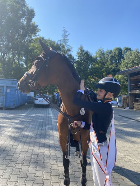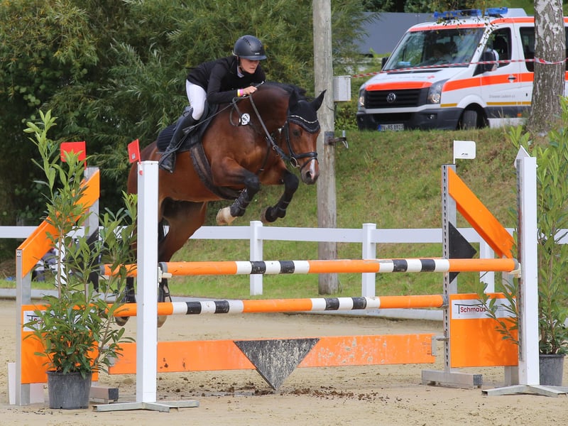 Unsere liebe 2013 geborene Stute (ca. 164 cm) sucht einen neuen, besten Platz. Sie ist ein echtes Verlasspferd, zuverlässig zuhause wie auch auf dem Turnier. Siegreich bis A-Springen. In der letzten Saison lief sie mit einer Reitbeteiligung 6/6 E-Springen fehlerfrei und absolvierten erfolgreich das Große Reitabzeichen. Seit vierjährig in meinem Besitz direkt vom Züchter, ist sie mein absolutes „Traumpony“ und begeistert täglich – ob in Kinderreitstunden, im Longenunterricht oder mit Springanfängern. Sie soll in erster Linie ein Kind glücklich machen. Sie ist kein Gewichtsträger auf Grund ihrer Größe , sollte aber ab und zu von einem leichten, erfahrenen Erwachsenen korrekt gymnastiziert werden, damit sie weiterhin locker, fit und gesund bleibt. Mit 6 Jahren brachte sie ein wunderschönes Fohlen (noch in meinem Besitz), das inzwischen Springpferde A siegreich ist – somit auch für die Zucht interessant. Ich wünsche mir für sie einen entspannten, liebevollen Platz mit Pferdeerfahrung, gern in eigenem, ruhigem Privatstall. Einsatz maximal bis A-Springen, mit der Möglichkeit, sie später eventuell in der Zucht einzusetzen. Kein Notverkauf, Sie wird ausschließlich abgegeben, weil mir aktuell leider die Zeit fehlt und ich ihr nicht mehr gerecht werden kann.