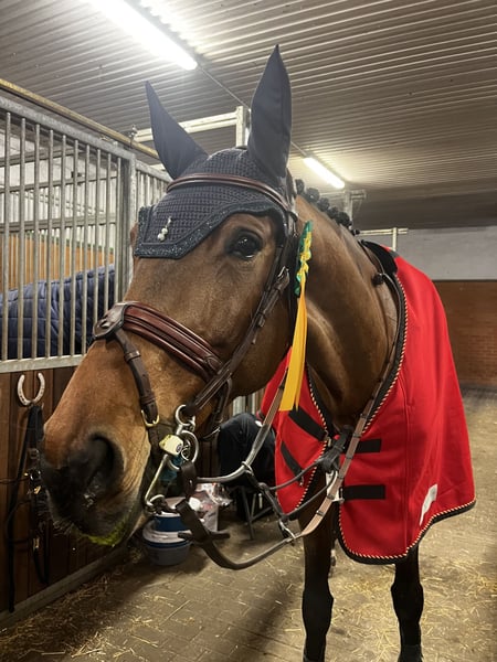For sale is our 2012-born, 16.1 hh chestnut DSP mare Leni (Los Angeles x Sadenio). She has already won jumping classes up to S* level under a junior rider and has placed internationally in M** competitions. Additionally, she has consistently earned medals at the national championships (children and juniors) over the past three years. Leni is a true fighter at heart, always giving her best in the show jumping course and instinctively compensating for rider errors without hesitation. She has a big heart and a lot of talent, which she often uses to help others out of difficult situations. She has accompanied me through my childhood and junior years and is now looking for a new partner to help her progress into the next levels. Only a loving 5-star home will do for her. Priority goes to the home, not the price.