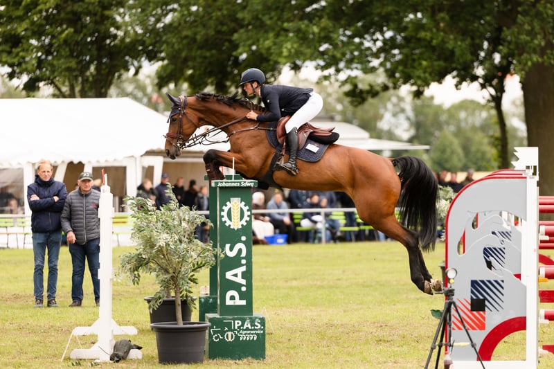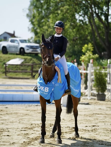 Zum Verkauf steht unsere 2012 geborene, 172 cm große, braune DSP Stute Leni (Los Angeles x Sadenio). Sie hat bereits unter einem Junior Springprüfungen bis zur Klasse S* gewonnen und ist international M** platziert. Zu dem hat sie mir die letzen drei Jahre immer einen Medaillenrang bei den Landesmeisterschaften ermöglicht(children und junioren). Sie ist ein echtes Kämpferherz und versucht im Parcours immer alles möglich zu machen und gleicht reiterfehler ohne nachzudenken aus! Sie hat ein großes Herz und viel Vermögen mit dem sie einen aus unglücklichen Situationen stetig aushilft. Sie hat mich durch meine Children und Junioren Zeit begleitet und sucht nun einen neuen Partner dem sie den Einstieg in die nächsten Klassen ermöglicht. Für sie kommt nur ein liebevolles 5-Sterne-Zuhause in Frage. Platz vor Preis.