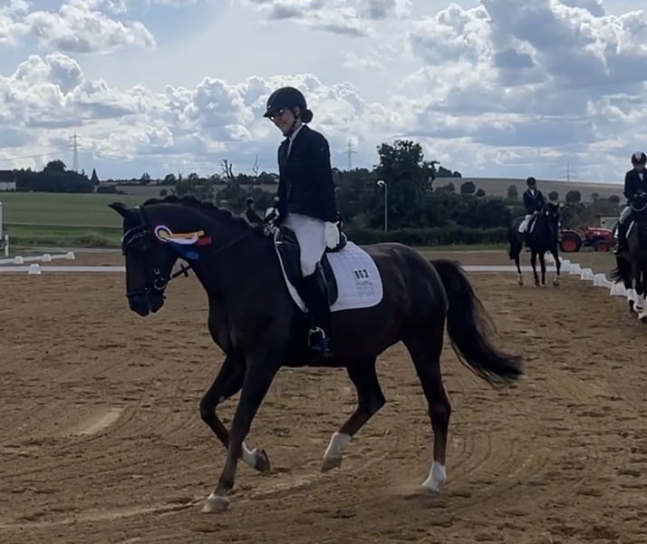Verkaufe elegante deutsche Sportpferdestute Zum Verkauf steht eine wunderschöne deutsche Sportpferdestute, die durch ihre Vielseitigkeit und ihr edles Erscheinungsbild besticht. Geboren im Jahr 2011, präsentiert sie sich in einem beeindruckenden Dunkelfuchs-Farbton und hat ein Stockmaß von 162 cm. Diese talentierte Stute ist ideal für den Dressursport geeignet und überzeugt durch ihre elegante Bewegungsführung sowie ihre Lernbereitschaft. Sie ist gesund, gut ausgebildet und zeigt stets freundliches Wesen und viel Willen. Sie ist sehr ausgeglichen und für jeden Spaß zu haben. Lilly hat keine Unarten und ist sehr brav. Sie ist vorn beschlagen, Schmiede- und Verladefromm, buckelt nicht und steigt nicht. Lilly konnte in der Vergangenheit viele Siege und Platzierungen bis zur Klasse M** erreichen. Aktuell ist sie L Dressur siegreich und somit top fit um direkt loszureiten. Auf dem Turnier wurde sie auch im Springen bis zur Klasse A** vorgestellt. Auch für die Freizeit ein top Partner, mit dem man jeden Tag Spaß haben kann. Lilly hat keinen aktuellen TüV da sie bereits seit 11 Jahren im Besitz ist und damals direkt vom Züchter erworben wurde. Perfekt für ambitionierte Reiter, die ein zuverlässiges und braves Pferd suchen. Bei Interesse oder für weitere Informationen stehe ich gerne zur Verfügung.
