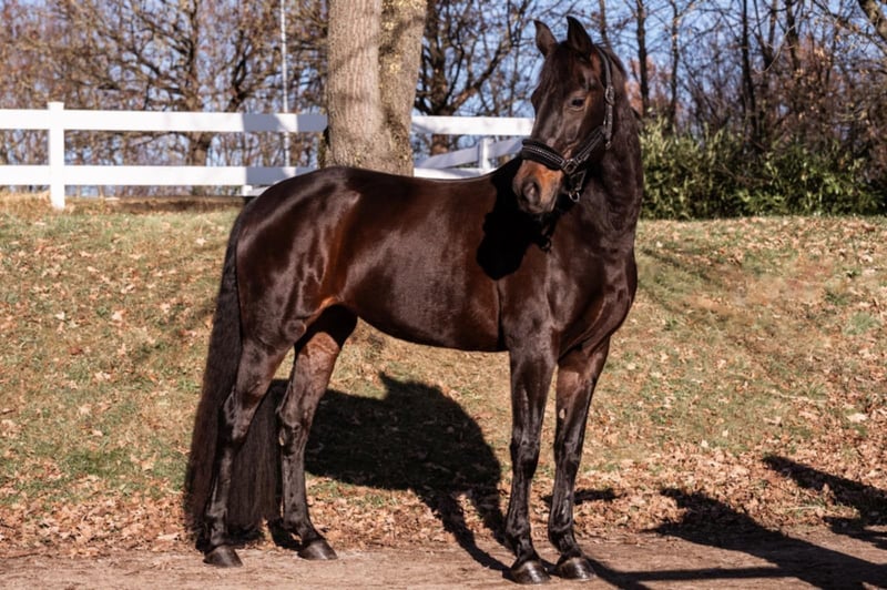 Verkauft wird unsere elegante Dunkelbraune Stute❤️ Diese wunderschöne Stute besticht durch ihre beeindruckende Erscheinung und ihr vielseitiges Potenzial im Dressursport. Mit einem Stockmaß von 170 cm bietet sie die perfekte Größe für ambitionierte Reiter, die Wert auf Qualität und Leistungsbereitschaft legen. Die Stute ist gut ausgebildet und zeigt sich im Dressurviereck äußerst talentiert. Sie verfügt über eine angenehme Grundausbildung, ist gut geritten und besitzt eine ausgeprägte Elastizität, sowie eine harmonische Bewegungsführung. Sie ist bis M platziert und Arbeitspiouretten gehen auch schon . Im Viereck gibt sie immer 100% und will gefallen . Dank ihres Charakters lässt sie sich angenehm reiten und ist sowohl für fortgeschrittene Reiter als auch für ambitionierte Nachwuchsreiter /Anfänger geeignet. Auch einen kleinen Sprung und das Gelände kennt sie . Später sicherlich interessant für die Zucht. Sie wurde stets sorgfältig gepflegt und befindet sich in einem hervorragenden Gesundheitszustand. Sie ist Schmiede- und Verladefromm. Sie ist nicht stutig am Bein . Wer also sein Herzenspferd sucht, ist hier genau richtig . Bei Interesse stehe ich gerne für weitere Informationen und eine Besichtigung zur Verfügung.Melden sie sich gerne per Whatsapp oder zum Telefonieren unter 01732185040