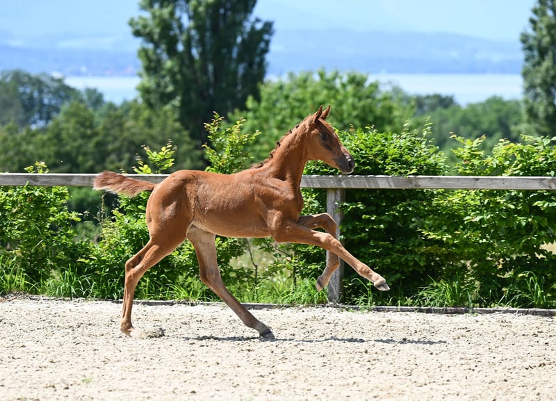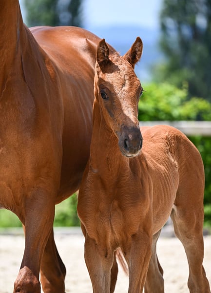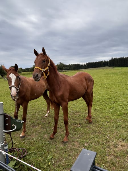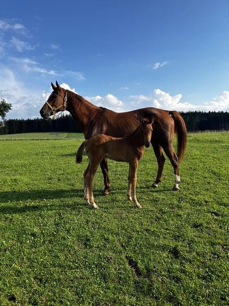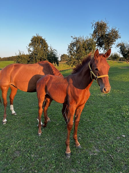 Wegen Bestandsverkleinerung/ Stallauflösung zu verkaufen. Lady All Red ist eine typvolle, im April 2024 bei uns geborene, als Fohlen prämierte Stute des Deutschen Sportpferdes aus der Anpaarung Va Bene x Zackman M. Sie ist eine elegante Fuchsstute mit minimalen Abzeichen am Hinterbein und überzeugt durch Präsenz und Ausstrahlung. Lady All Red wächst bei uns in Bayern in einem ruhigen, pferdegerechten Umfeld auf. Sie ist roh, kennt jedoch das Halfterführen sowie den Hufschmied. Charakterlich zeigt sie sich neugierig, frech und aufmerksam – eine junge Stute mit Charme und Entwicklungspotenzial. Bei uns war sie stets gesund und zeigt sich altersgerecht und unkompliziert im täglichen Umgang. Lady All Red kennt Kinder, Hunde sowie landwirtschaftliche Maschinen und bringt sehr gute Voraussetzungen für Zucht, Freizeit oder sportliche Perspektiven mit. Sie sucht ein liebevolles Zuhause, das ihre weitere Ausbildung behutsam übernimmt. Privatverkauf.
