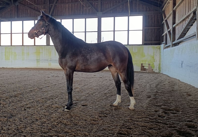 Vielversprechende, doppelveranlagte, zweijährige Stute in der begehrten dunkelbraunen Jacke zu verkaufen. Über den Vater Latinum und den Großvater Le Formidable trägt sie das Blut der Ausnahmevererber und Grand Prix-Sieger Bordeaux, Ferro und De Niro in sich. Auch in der Mutterlinie des Vaters finden sich zahlreiche S-Dressurpferde und Grand Prix-Sieger. Mutter Embassina ist springbetont gezogen. Muttervater Embassy I ist Vater des Weltklassepferdes SAP Escada FRH, das unter Ingrid Klimke Mannschafts -Goldmedaillien bei der EM und WM in der Vielseitigkeit gewann. Aufgrund der herausragenden Abstammung und des selbstbewussten Charakters ist die wunderschöne Zweijährige eine Aspirantin für Erfolge in Dressur, Springen und in der Vielseitigkeit. Der Verkauf erfolgt nur in verantwortungsvolle Hände, die das Potenzial der Stute zu schätzen wissen. Preis der Qualität entsprechend