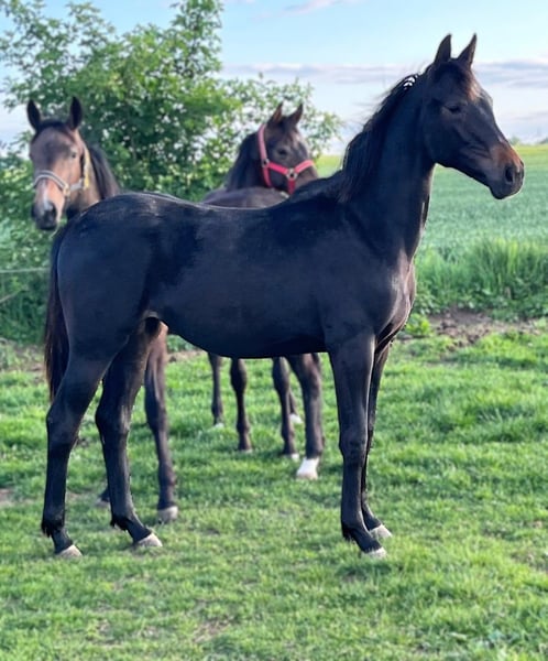 This beautiful and correctly built young mare impresses on all levels: She looks outstanding in every stage of development, grows evenly, and has a friendly, calm, and people-oriented character. Her basic gaits are modern, powerful, and expressive – with plenty of push from the hindquarters, reach, and balance. Awarded as a championship foal, she possesses everything that defines a modern dressage horse: exceptional talent, correct conformation, top-notch upbringing – and the potential for high-level competition. Ideal for both ambitious amateurs and professionals alike. - Championship foal with sporting prospects (international level conceivable) - Young horse for sport & breeding – suitable for amateurs and professionals - Very good movement quality & correct body structure - Excellent character: friendly, strong nerves, people-oriented - In perfect health, well-cared for & optimally raised - Top pedigree Regularly dewormed, vaccinated, shown to the farrier, and provided with minerals: The mare is in excellent health, well-developed, and lovingly cared for. Her sire is the premium stallion St. Emilion (Klosterhof Medingen) from the lineage of Rubin-Royal. He shone with top scores in the ability test (8.62) and sport test (8.59), was the Oldenburg vice-champion, and was nominated for the Bundeschampionat. His offspring impress with elegance, rhythm, and swing. The dam comes from a successful Hanoverian mare line and is a noble daughter of the Bundeschampion Herbstkönig. Through Laurentio (Lauries Crusador xx) and De Niro, the lineage traces back to proven dressage bloodlines – another quality feature of this promising mare. We would be delighted to present this exceptional horse to you in person! Location: 16945 Meyenburg Contact & appointment scheduling +49 176 55323449 – also available via WhatsApp