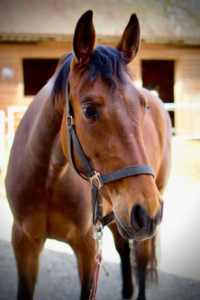 She is still quite green and therefore the ideal partner for someone looking to train their own horse and build a true partnership. The farrier poses no problem for her.