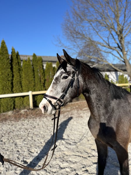 3-year-old mare by Vingino – well-behaved, talented, and versatile For sale is a 3-year-old, exceptionally well-behaved mare by Vingino out of a Conlander x Quintender dam. She currently measures approximately 156 cm (15.2 hh), but is still significantly overbuilt behind, so it is expected that she will grow quite a bit more. Her dam is highly successful in sport and stands at 172 cm (16.2 hh), which indicates that quality and talent have been passed on. The mare has recently been backed and has proven to be very uncomplicated and obedient during training. Under saddle, she has not yet put a foot wrong and impresses with her lightness and rideability. She shows promising talent for jumping but also demonstrates very beautiful movements in dressage, making her suitable for a versatile future career. Thanks to her pleasant temperament and easy handling, I can easily imagine her later as a youth or amateur riding horse. A recent X-ray examination shows no findings. Please feel free to contact me if interested – additional information and videos can be provided.