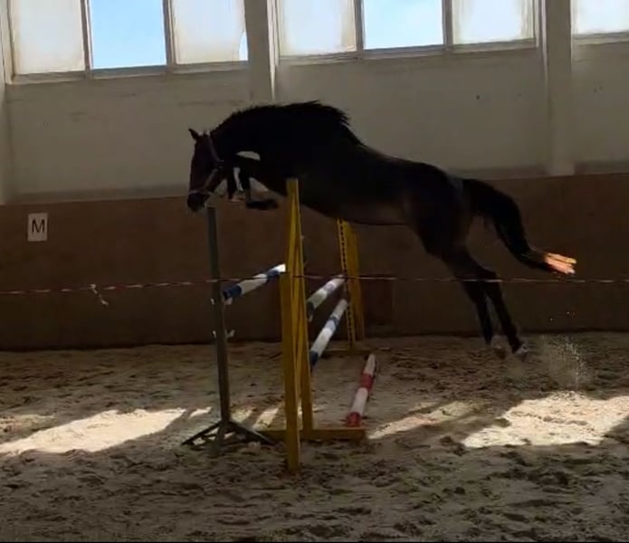 Yegua de 3 años por Vingino – tranquila, talentosa y versátil Se ofrece a la venta una yegua de 3 años, completamente tranquila, por Vingino, de madre Conlander x Quintender. Actualmente mide aproximadamente 1,56 m, aunque aún está claramente por encima de la línea de la cruz, por lo que se espera que siga creciendo. Su madre es una amazona de alto rendimiento, con una altura de 1,72 m, aportando así mucha calidad y potencial. La yegua ha sido recientemente iniciada en la monta y se muestra sumamente dócil y tranquila en todo momento. Bajo la silla, no ha cometido ningún paso en falso y destaca por su facilidad de movimiento y su buen carácter para la equitación. Tiene un talento prometedor para el salto, pero también presenta movimientos muy bonitos en la doma, lo que la hace apta para un entrenamiento versátil. Gracias a su temperamento agradable y su carácter fácil de montar, puedo imaginarla en el futuro como una yegua para jóvenes jinetes o para damas. Cuenta con un informe de radiografías sin hallazgos relevantes. Interesados, por favor, contacten. Se pueden enviar más información y videos.