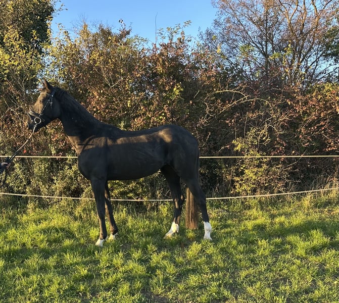 For sale ✨ This beautiful 3-year-old mare by Dimaggio Black out of a state premium mare by Quilato (Quidem de Revel) is available due to our current situation. Momo has been backed and moves confidently in walk, trot, and canter. She is very well-behaved in handling and always stays close to her rider when ridden. She is very focused, learns quickly, and has three good gaits. Momo was born and raised with us. She is a mare that always brings her partner, the rider, great joy. Serious inquiries are welcome, and we are happy to send a video.