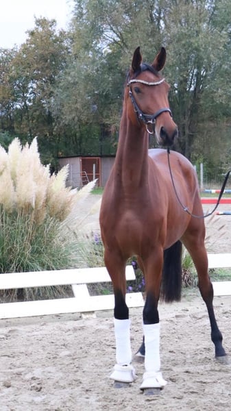 Fine Diva is a four-year-old, elegant mare with a sporty appearance and excellent movement. She impresses with her elasticity, rhythmical correctness, and natural balance, making her particularly interesting for further athletic development.