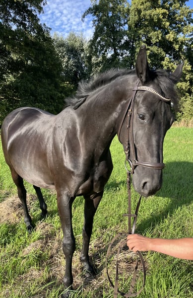 Zum Verkauf steht eine elegante und typvolle Rappstute aus der bewährten „Stutenfamilie der Nixe“. Sie überzeugt nicht nur durch ihre elegante Erscheinung, sondern auch durch ihren einwandfreien Charakter und ihre vielseitige Verwendbarkeit. Im täglichen Training zeigt Sie sich motiviert, arbeitswillig und lernfreudig. Sie verfügt über drei sehr gute GGA mit besonders hervorzuhebendem Schritt und einer aktiven Hinterhand. Das ist ideal für Dressur und Vielseitigkeit. Durch ihre Abstammung auch für die Zucht sehr gut geeignet. Natascha ist absolut brav, menschenbezogen und unkompliziert. Beim Schmied zeigt Sie sich unproblematisch und ist aktuell Barhufer. Das Verladen auf den LKW sowie Anhänger ist ebenso kein Problem. Auf der Koppel ist sie entspannt und eher rangniedrig. Diese junge und talentierte Stute bringt alles mit, was man sich für eine erfolgreiche Zukunft im Sport oder der Zucht wünscht.