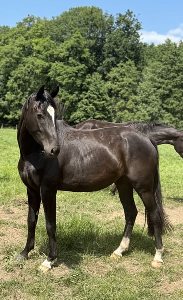 Mit Fürstin Fayra steht eine 4-jährige Rappstute zum Verkauf, die sportliche Qualität mit feinem Charakter vereint. Aus bester Abstammung von Fürst Zonik x Totilas bringt sie alles mit, was man sich für eine erfolgreiche Zukunft im Dressursport wünscht. Diese Stute ist ein Pferd, das über Rittigkeit, Losgelassenheit und feine Kommunikation überzeugt – ideal für Reiter, die Leistung und Harmonie verbinden möchten. 💫 Eckdaten & Stärken: • Direkt vom Züchter, liebevoll aufgewachsen • Drei überdurchschnittliche Grundgangarten mit viel Schwung und Elastizität • Taktklar, bergauf konstruiert und mit aktivem Hinterbein • Sehr menschenbezogen, brav und unkompliziert im Umgang • Fein an den Hilfen – vermittelt ein sicheres Reitgefühl • Ideale Basis für den weiteren sportlichen Aufbau Fürstin Fayra verbindet sportlichen Anspruch mit innerer Ausgeglichenheit. Sie möchte mit ihrem Reiter zusammenarbeiten und zeigt sich dabei stets kooperativ und lernwillig – beste Voraussetzungen für eine erfolgreiche Förderung im Dressurviereck. 🌿 Passend für: Ambitionierte Reiter, die ein qualitatives Nachwuchspferd suchen und dabei Wert auf Rittigkeit, Charakter und feine Abstimmung legen. Besonders harmonisch mit Reitern, die mit Gefühl und Klarheit arbeiten. Ein Pferd für Reiter, die Sport und Partnerschaft in Einklang bringen möchten – Fürstin Fayra freut sich auf ihre Zukunft.