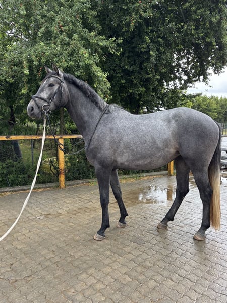 For sale is a 16.1 hh, 4-year-old German Sport Horse mare (2022) from our own breeding. Pedigree: Chubakko x Salito The dam has competed up to S-Class show jumping and has achieved M** placings. The mare has been gently backed and worked age-appropriately; she has not seen much yet and is at the beginning of her training. She is somewhat sensitive and a bit special. She is well-behaved in handling. She is familiar with lunging, free movement, daily stable routines, farrier work, and loading. Due to her age, temperament, and the necessary time investment, she will only be placed in experienced hands with a background in training young horses. She is not suitable for beginners. She is also of interest as a broodmare thanks to her performance-tested pedigree. Videos available upon request at 015560149005.