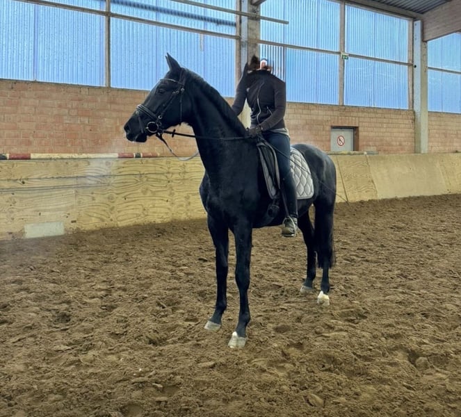 Diese vierjährige Stute begeistert mit ihrer eleganten schwarzen Jacke, ihrem wachen Blick und einem wunderbar ausgeglichenen Wesen. Sie ist sehr kopfklar, feinfühlig und harmonisch zu reiten – stets ehrlich, lernbereit und angenehm im Dialog mit dem Reiter. Im täglichen Umgang zeigt sie sich außergewöhnlich brav und unkompliziert. Aus bester Familie stammend: Ihre Schwester ist hocherfolgreich im Dressursport unterwegs.. Auch diese junge Stute wurde bei uns liebevoll in Züchterhand aufgezogen, gut sozialisiert und pferdegerecht entwickelt. Ein Pferd mit Qualität, innerer Ruhe und Herz – für Menschen, die nicht nur reiten, sondern gemeinsam wachsen möchten.