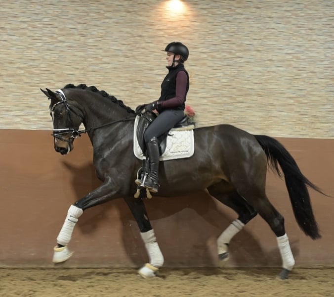 Liebe Interessenten, Für Terminvereinbarungen Probereiten senden Sie mir bitte eine WhatsApp. Für weitere Fragen bin ich tagsüber per WhatsApp erreichbar, telefonisch erreichen Sie mich am Besten zwischen 16 und 19 Uhr. Ich freue mich auf eine Kontaktaufnahme www.angelina-devittorio.de ⭐️Maya⭐️ Alter: 4 jahre (2022) Größe: ca 1,70 m Abstammung: Montgomery x Serafino Ausbildungsstand: Dressurpferde A Niveau AKU: Gute Röntgenbilder vorhanden Zum Verkauf steht eine bildschöne Tochter des Montgomery aus einer Serafino Mutter mit drei hervorragenden Grundgangarten. Sie verfügt über eine hervorragende Galoppade mit viel Versammlungsbereitschaft, ihre sehr gute Trabmechanik mit sehr aktivem Hinterbein und ihr taktsicherer Schritt mit sehr gutem Übertritt. Sie ist ein äußerst angenehmes, unkompliziertes Pferd, sehr lieb im Umgang und stets menschenbezogen. Sie ist direkt vom Aufzüchter und ist auf sicherem Dressurpferde A Niveau und ist direkt startklar in dieser Klasse.. Super kopfklares Nachwuchspferd mit bester Qualität und hervorragender Perspektive für den höheren Dressursport. Absolut amateurtauglich , für jeden Amateur ab solidem A-Niveau geeignet, natürlich ist gewisse Jungpferde-Erfahrung Voraussetzung. Sie hat gute Röntgenbildern und hat keinerlei Vorerkrankungen. Eine super schicke Stute mit besten Anlagen, hervorragenden Grundgangarten und großartiger Perspektive für die Zukunft. auch für jungpferdeerfahrene Jugendliche bestens geeignet perspektivisch als zukünftiges Juniorenpferd. ⚜️Tel: 0171-3438949 ⚜️a.devittorio@web.de ⚜️https://www.ehorses.de/angelinadevittorio Facebook und Instagram Angelina De Vittorio