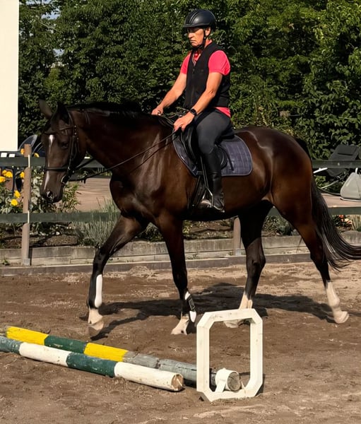 Very well-behaved mare with excellent basic gaits. Started under saddle in late summer. X-ray images available. Learns quickly and shows great talent. Certainly a diva for the big arena. As she is still growing, she is currently enjoying a winter break. Only to be sold into experienced, caring hands. Please feel free to contact me by phone at 0176 70017 591. Margarete Gödel