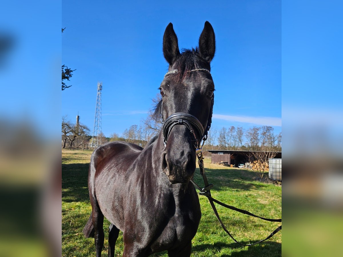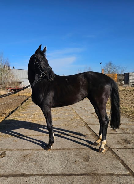 Zum Verkauf steht aus eigener Zucht diese wunderbare Rappstute aus der hocherfolgreichen Stutenfamilie der Nightfire gepaart mit dem fantastischen Vererber Shomari S. Sie hat 3 jährig eine sehr gute Stutenleistungsprüfung abgelegt. Insbesondere die Fremdreiternote von 8,5 belegt,dass es sich um eine sehr rittige Stute handelt, die zudem gepaart ist mit qualitätsvollen Grundgangarten und solidem Springtalent (bisher nur Freispringen).4 jährig wurde sie züchterisch genutzt und war Mama eines bewegungsstarken Hengstfohlens in Championatsqualität (26 Punkte). Aktuell befindet sie sich noch in ihrer Stutenherde (Nachts in einer separaten Box,tagsüber gemeinsam auf der Weide),da ihr Fohlen erst vor kurzem abgesetzt wurde ( es wurde erst im Juni 2025 geboren).Sie ist nicht wieder belegt worden, wird aber auch noch nicht wieder geritten, da das momentan zeitlich und personell schwierig zu organisieren ist.Bei ernsthaftem Kaufinteresse, findet sich aber sicher eine Lösung,Night Melodie wieder unter dem Sattel zu aktivieren. Sie war absolut unkompliziert unter dem Sattel,fleißig, gut händelbar,tolle Anlehnung,keine Unarten. Sie ist insgesamt ein sehr freundliches Pferd, was unheimlich gerne vom Menschen betüttelt wird.In der Herde ist sie sozial super verträglich und als eher rangniedrig einzustufen. Die Stute ist kerngesund,hat ein korrektes Fundament und große gesunde Hufe. Weiter Informationen gerne jederzeit telefonisch unter der 01714773611 . Die Fotos in der Annonce sind aktuell von letzter Woche,die Videos zeigen unter anderem Night Melodie als Fohlen,als Mama mit Fohlen und auch aktuell beim Freilaufen vergangene Woche.