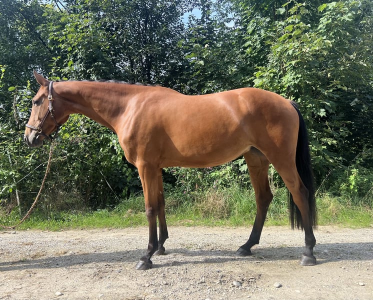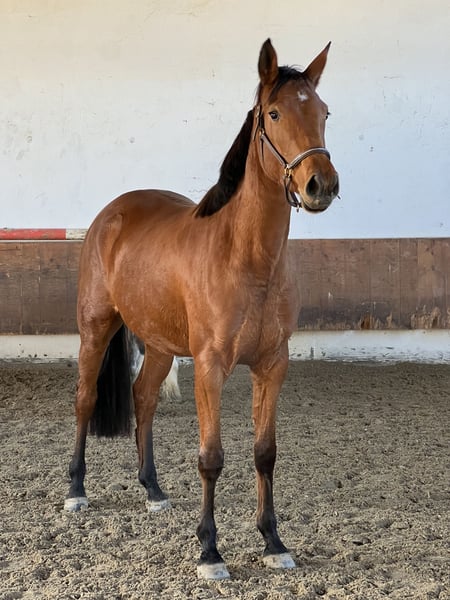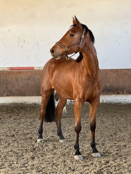 Now selling a 5-year-old show jumping mare – still untrained due to lack of time! Pina Lotta CAYADO x LANDPRINZ x PILOT Farrier- and loading-friendly, well-mannered and not shy or overly lively in handling! Currently getting accustomed to saddle and bridle. A lovely, agile, and quick little mare that I could see excelling in show jumping or in the beginner rider class. Certainly a great horse for transitioning from pony to full-sized horse. Price negotiable, space takes priority over price!