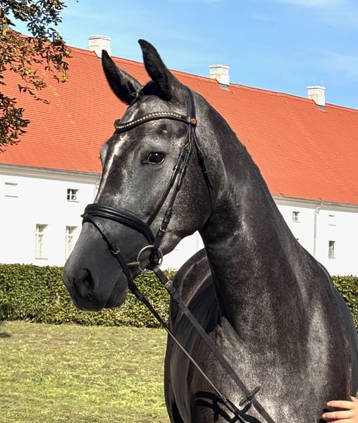 **Sales Advertisement: German Sport Horse - Black Grey Mare** For sale is a talented black grey mare, born in 2021. With a height of 172 cm, she is an impressive presence and is excellently suited for dressage sports. She completed her mare performance test in May 2025, receiving a score of 8.5 for rideability and a 9 for interior quality. This mare captivates not only with her elegant appearance but also with her outstanding movements and character. She is well-behaved and has a friendly disposition, making her an ideal partner for the ambitious dressage rider. If you are interested or have further questions, please feel free to contact me. Visit us and see for yourself this wonderful horse!