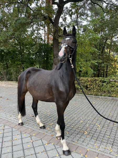 **Verkaufsanzeige: Deutsches Sportpferd** Zum Verkauf steht eine wunderschöne, talentierte und vielversprechende Stute, geboren im Jahr 2020. Sie ist ein dunkelbraunes Deutsches Sportpferd mit einem Stockmaß von 165 cm. Im letzten Winter wurde sie schonend angeritten und durfte im Frühling erste Erfahrungen auf dem Turnier mit einem jungen Mädchen sammeln. Den Sommer durfte sie Kapazitätsbedingt nochmal auf der Weide verbringen und ist jetzt seit September wieder unter dem Sattel. Dabei zeigt sie sich stets absolut motiviert, souverän und gelassen, sowohl Zuhause als auch auf dem Turnier oder Auswärtstraining. Charakterlich ein absolutes Traumpferd, sowohl beim reiten als auch im Umgang. Sie befindet sich aktuell auf einem sicheren Springpferde A Niveau, Preis steigt bei weiterer Förderung und Turniervorstellung. Bei Interesse oder für weitere Informationen stehe ich gerne zur Verfügung.