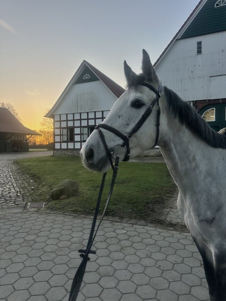 Diese hübsche Schimmelstute sucht ein liebevolles neues Zuhause. Sie ist sehr brav im Umgang und zeigt sich unkompliziert und freundlich. Altersentsprechend beherrscht sie alle drei Grundgangarten sicher und konnte auch bereits erste Erfahrungen über kleine Sprünge sammeln. Dabei zeigt sie sich motiviert und ist nicht guckig. Auch im Gelände ist sie brav und zuverlässig und kennt das Ausreiten. Auf Grund von Zeitmangel muss ich sie leider verkaufen. Bei Interesse oder weiteren Fragen, kontaktieren Sie mich gern unter 01724679339