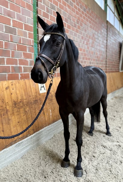 Por favor, las consultas deben realizarse exclusivamente por teléfono o WhatsApp al +49 151 17665701. Yegua de 5 años, hija de Singlord Joker x Quidams Rubin. Mide aproximadamente 1,66 m y ha obtenido varias clasificaciones en concursos. Ha sido colocada en 7/8 rondas en la categoría de salto de obstáculos A. Es muy cautelosa en los saltos y tiene un carácter tranquilo y confiado. Realiza cambios simples en vuelo y es fácil de montar en doma. Nombre en competición: Savage 13. Cuenta con un buen certificado veterinario actualizado de julio de este año.