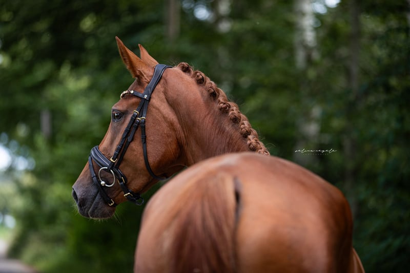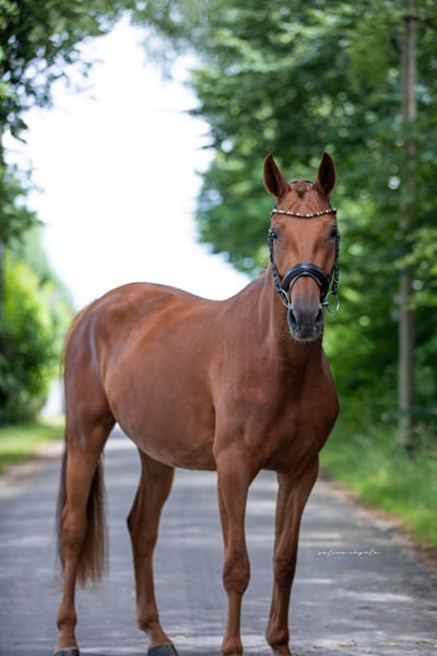 Verkaufe deutsches Sportpferd – Stute, geb. 2021, Fuchs, ca. 170 cm Stockmaß Diese wunderschöne deutsche Sportstute ist die perfekte Begleiterin für Freizeit und sportliche Aktivitäten. Geboren im Jahr 2021, überzeugt sie durch ihr freundliches Wesen und ihre beeindruckende Erscheinung. Mit einem Stockmaß von ca. 170 cm bietet sie die ideale Größe für vielseitige Einsätze. Sie ist ein zuverlässiges Freizeitpferd, das durch ihre Ruhe und Gelassenheit besticht. Ihr freundliches Naturell macht sie zu einer angenehmen Partnerin für Reiter aller Erfahrungsstufen. Die Mutter und ein Bruder können mitbesichtigt werden, 2 weiterer Brüder sind in Hengstaufzucht und ins Ausland verkauft worden. Um es dem jungen Pferd nicht ganz so schwer zu machen und um dem Reittourismus vorzugreifen, wird eine Gebühr von 50€ erhoben, welche bei Kaufabschluss angerechnet wird. Telefonisch erreichbar ab 17:00h