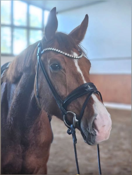 For Sale: German Sport Horse – Mare, born in 2021, chestnut, approximately 17.4 hh This elegant and talented dressage mare impresses with her excellent pedigree and striking appearance. Born in 2021, she already shows great potential as a partner for an ambitious rider who values quality and performance. With a height of around 17.4 hands, she is the perfect size for dressage. Her friendly nature and willingness to learn make her an ideal partner for building and advancing her skills in competition. Please feel free to contact me for more information or to arrange a personal impression and test ride.