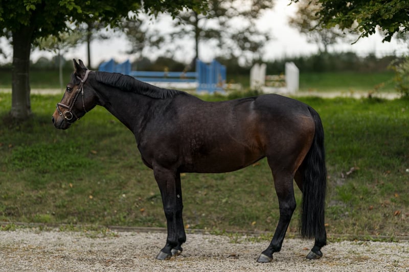 Fancy ist eine sechsjährige Stute direkt vom Züchter. Sie ist brav beim reiten und macht einen schönen Grundsprung. Aufgrund ihrer Größe wurde sie spät angeritten und ist noch etwas grün. Hat aber ihre ersten Trainingsturniere bestritten und zeigte sich brav und einfach am Turnier. Sie kennt longieren, Führanlage, Wiese, verladen, Schmied und Tierarzt. Schönes Pferd für die ganze Familie. Im Umgang ist sie sehr ruhig und einfach.