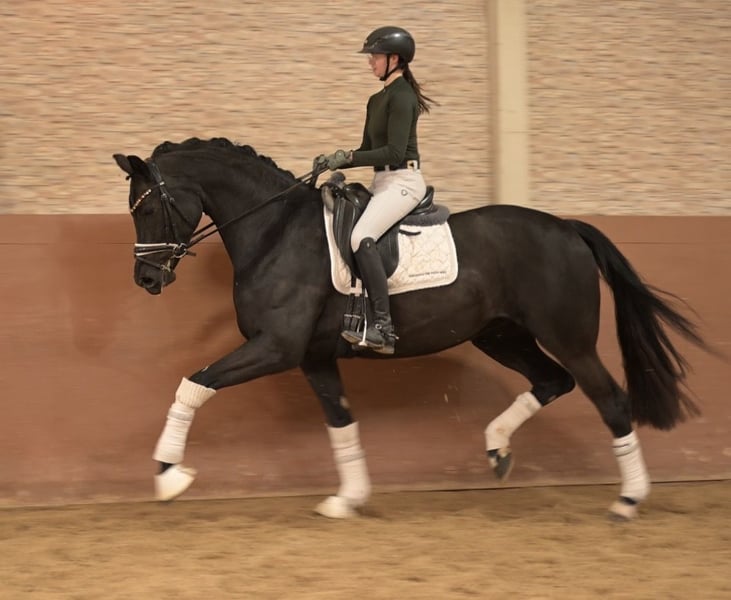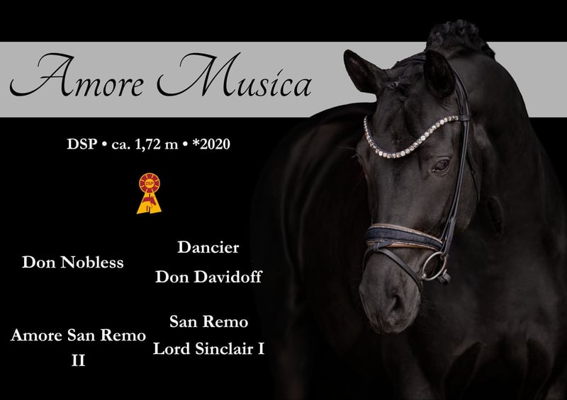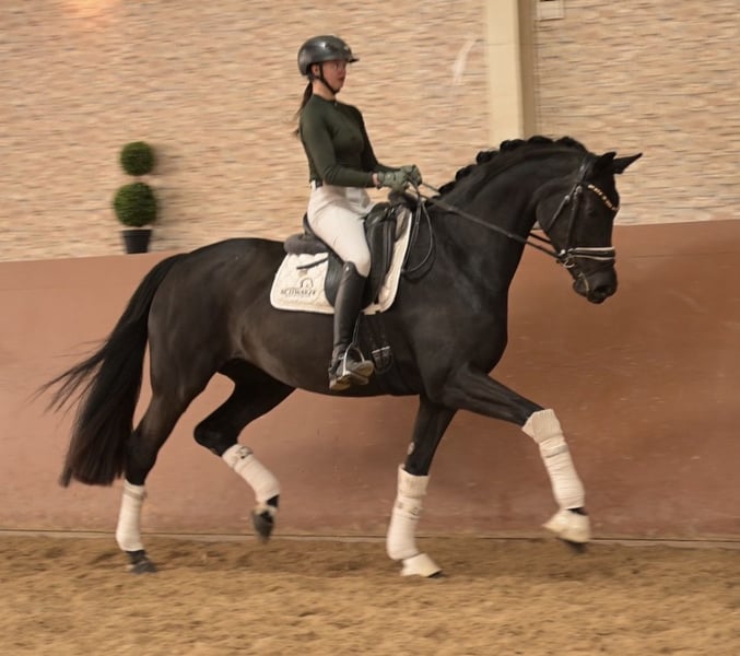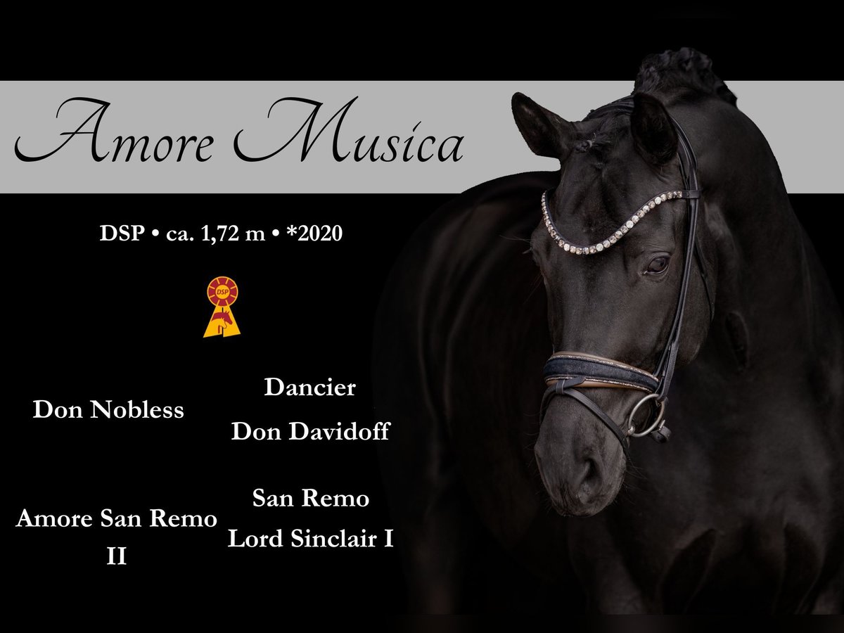 Liebe Interessenten, Ausführliche Videos versende ich gerne auf Anfrage per WhatsApp 00491713438949 Für Terminvereinbarungen Probereiten senden Sie mir bitte eine WhatsApp. Für weitere Fragen bin ich tagsüber per WhatsApp erreichbar, telefonisch erreichen Sie mich am Besten zwischen 16 und 19 Uhr. Ich freue mich auf eine Kontaktaufnahme www.angelina-devittorio.de ⭐️ Amore Musica ⭐️ • Alter: 6 Jahre (2020) • Größe: ca. 1,71 m Abstammung: Don Nobless x San Remo • Ausbildungsstand: Dressurpferde A hochplatziert • AKU: gute alte Röntgenbilder vorhanden Zum Verkauf steht eine atemberaubend schöne Rappstute mit hervorragender Qualität, Rittigkeit und bestem Charakter. Diese außergewöhnliche Stute konnte bereits mit einem tollen Fohlen überzeugen und wurde dafür mit der Staatsprämie ausgezeichnet. Vor ihrem erfolgreichen Zuchteinsatz war sie bereits im Turniersport aktiv und in Dressurpferde A hoch platziert, Aktuell ist sie sicher Dressurpferde A fertig und L Lektionen sind spielerisch begonnen . Absolut amateurtauglich aufgrund ihres tollen Charakters . Wunderschön, liebenswert und mit einem ganz feinen, ausgeglichenen Wesen ausgestattet, bereitet diese Stute täglich große Freude im Umgang und unter dem Sattel. Sie verfügt über eine außergewöhnlich gute Trabmechanik mit viel Grundschwung und einem aktiven Hinterbein, einen sehr guten, taktsicheren und geregelten Schritt sowie eine sehr gute, praktische Galoppade. Eine besondere Stute für Zucht und Sport – ein echtes Herzenspferd. ⚜️Tel: 0171-3438949 ⚜️a.devittorio@web.de ⚜️https://www.ehorses.de/angelinadevittorio Facebook und Instagram Angelina De Vittorio Videos bitte per WhatsApp 00491713438949