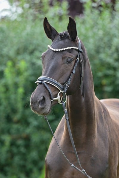Hier geht's zur Kollektion und Online-Registrierung: https://auktion.pzvbw.de/auctions MwSt. 0 % Diese volljährige Staatsprämienstute ist sowohl züchterisch als auch reiterlich eine hochinteressante Offerte. Ihre Mutter, aus der berühmten P-Familie, brachte die beiden Prämienhengste Bloomingdale und DSP Don Royal. Ihre Stutenleistungsprüfung absolvierte sie mit einer Dressurnote von 8,03. Auch auf einer Reitjagd sammelte sie bereits Erfahrungen. This state premium mare is a highly interesting prospect for breeding and riding. Her dam, from the famous P family, produced the two premium stallions Bloomingdale and DSP Don Royal. She completed her mare performance test with a dressage score of 8.03. She has also already gained experience in the hunting field.