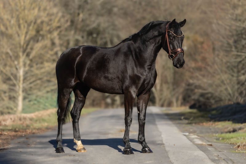 For sale is our beautiful German Sport Horse mare, Fanny Girl, born in June 2020, with an approximate current height of 16.1 hh. The elegant black mare impresses not only with her presence but also with her friendly temperament. Fanny is already backed and confidently moves in walk, trot, and canter under saddle. She has also completed her first small jumps, demonstrating talent and enjoyment in her work. She is very eager to learn, well-behaved, and easy to handle on a daily basis. Both in riding and handling, she consistently shows cooperation and a people-oriented attitude. Currently, she stays in a box at night and spends her days in a herd, making her well-socialized. Fanny is barefoot and adapts very well to this. An excellent prospect for riders seeking an honest and talented horse for further training. Fanny is located in Windhagen-Rederscheid, 53578. If you are interested or have questions, we look forward to hearing from you. Additional photos and videos can be sent upon request. A personal introduction and test ride are possible at almost any time. We charge a flat fee of €30 for the viewing and trial riding. Transporting her to her new home is also an option, of course.