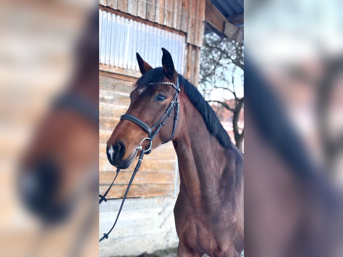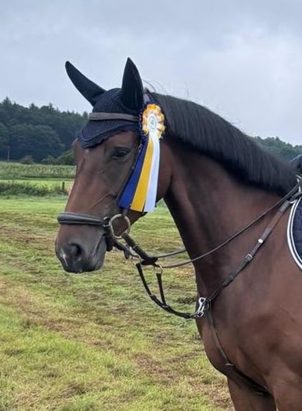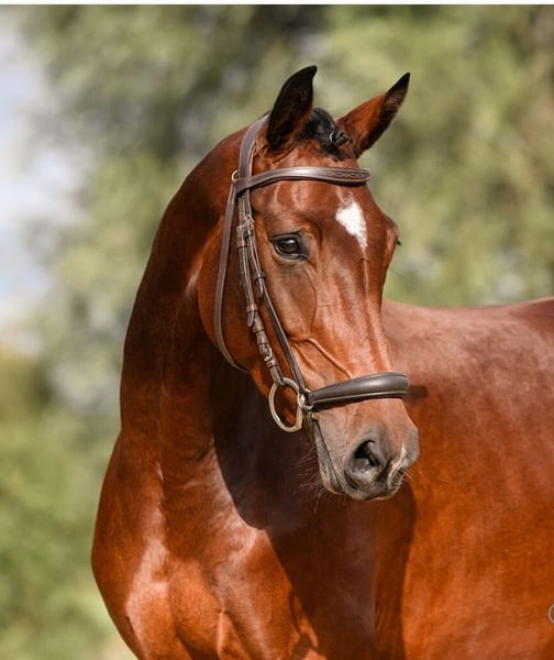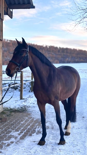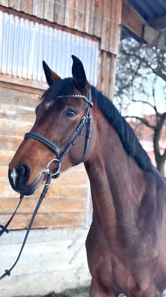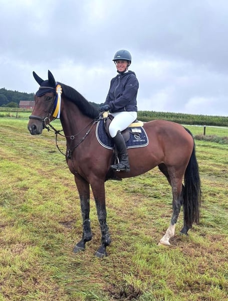 Dreamy beautiful mare, well-trained and capable of flying changes. She has already placed in an A-level show jumping competition and is now successfully competing in courses at L level. Very ambitious and fearless when jumping, she also clears water ditches and other obstacles with ease. She loves going out on rides in the terrain. I often ride her alone, and she confidently goes everywhere on her own. A real fun horse for trail riding. In handling, she is a dream—super calm, well-behaved, and very people-oriented. As a 4-year-old mare, she already produced a wonderful foal by Consantos. She is an excellent mother. A very reputable breeder with TÜV certification is available.