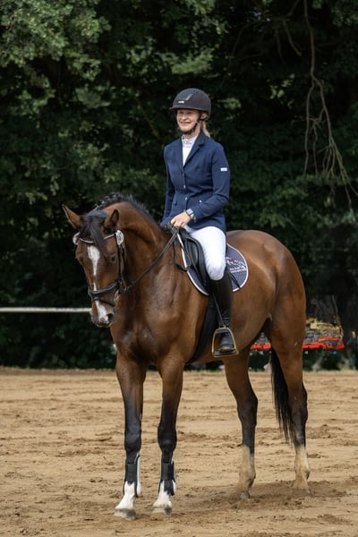Zum Verkauf steht eine 6-jährige Stute, die durch ihre sehr gute Rittigkeit überzeugt. Sie ist angenehm leicht zu reiten und vermittelt dem Reiter jederzeit ein sicheres und komfortables Gefühl. Auch im Gelände zeigt sie sich brav und motiviert alleine wie auch in der Gruppe geht sie gerne voran. Im Sport konnte sie bereits Springpferdeprüfungen der Klassen A und L gewinnen und bringt damit viel Qualität und Vermögen für den Springsport mit. Im täglichen Umgang ist sie unkompliziert: Schmiede- und Verladefromm sowie insgesamt sehr angenehm im Handling. Eine tolle Stute für ambitionierte Reiter, die ein zuverlässiges und talentiertes Pferd suchen.