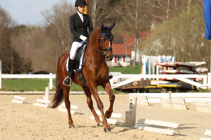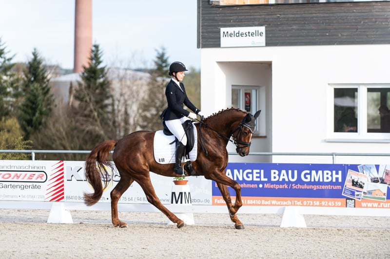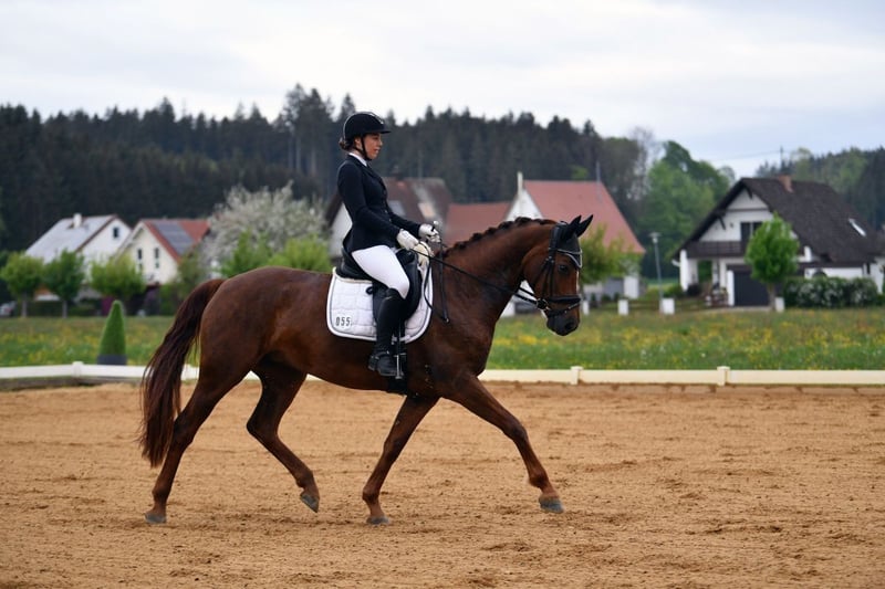 For sale is an 8-year-old, stunning and light-footed DSP State Premium Mare with a heart of gold! This exceptionally beautiful mare impresses not only with her striking appearance but also with her talent and quality. Her calm and straightforward nature, always honest character, and strong willingness to please make her a true dream horse that excites both in daily work and handling. She is equipped with three top-quality basic gaits, which have already been rewarded with high marks in dressage competitions. She has already won in Dressage Horse Class A and has repeatedly placed well at L-level. Traversals and flying changes have been introduced in her daily training. She is developing into an outstanding young prospect with excellent potential for the big arena, having been trained so far by amateurs. Thanks to her loving personality and easy handling, she is also ideally suited for any amateur rider or children. She is currently registered as a competition horse and ready to start riding. Recent X-ray images are available – no findings. (Will be provided upon serious interest.) Feel free to contact us by phone, WhatsApp, or email. johanna.rentschler@web.de 0151 28755752