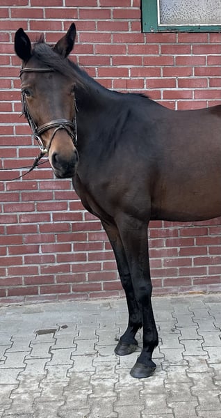 Eight-year-old dark bay mare with potential seeking a supportive home For sale is an 8-year-old dark bay mare with good basic gaits and lots of engagement. She is motivated under saddle, shows no vices such as rearing or bucking, and is herd-friendly. She enjoys hacking out and jumping, bringing great pleasure in both disciplines. She is well-behaved at the blacksmith's. She particularly demonstrates strong ambition when jumping, makes excellent efforts over fences, and remains completely fearless. Due to her temperament and versatility, I can also very well imagine her as a eventing horse. She is not a beginner's horse, as she occasionally requires a clear, consistent approach. For personal reasons, she has been worked well below her potential and has had several breaks—not due to injury, but for human reasons. The mare is in top condition and healthy; TÜV including back assessment available. A prompt sale is preferred. For uncomplicated, quick sale, there is room for negotiation. I wish for a loving home where she can be further supported and worked according to her potential. Approximate height: 16.1 hh; for orientation, the rider is about 17.8 hh. The mare had a break over the winter and we are now resuming training. To avoid riding tourism, a fee of €20 applies for a trial ride. Please note, this is a sales listing. No leasing or gifting due to special circumstances. I kindly ask to refrain from such inquiries. Thank you very much! €7,900 if collected by the end of February. Otherwise, €9,900 negotiable.