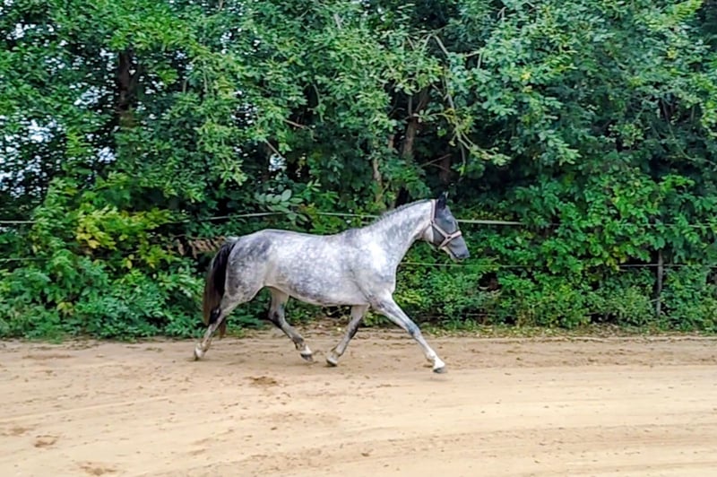 Je vends ma jumente d'environ 1,68 m, issue de Diacontinus et d'une Continue - Limborat. Née en 2018, elle a été brièvement monté à 3 ans avant de passer à la reproduction. La jument est douce en main, amicale et facile à apprendre. Elle se montre bien porteuse et est une excellente mère. Sa mère, Classic Touch, a elle-même été placée jusqu'à la classe S avec une jeune cavalière. Je la vends en raison d'une réduction de cheptel, n'hésitez pas à consulter nos autres juments.