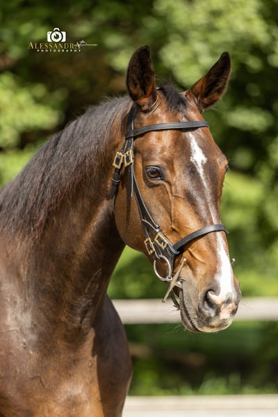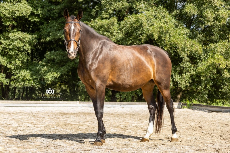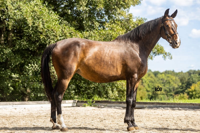 On behalf of the client… Eve… …is a super stylish, expressive Warmblood mare in the prime of her life. Her fine personality and radiant presence are incomparable – you can feel it immediately. She was backed late by her breeder and is therefore completely unspoiled. Her current owner has placed great emphasis on her trusting attention to her rider during her further training. She is currently at the beginning of her career as a riding horse, is trained in the basic gaits, and has begun lateral work. She is familiar with training using cavaletti poles, groundwork, gymnastic work, and horsemanship, and she consistently demonstrates a positive work ethic. She is steadily being trained further by advanced riders and introduced to new lessons. Of course, Eve has also gained experience on group trail rides. She has already participated in courses at the stable and is familiar with typical stable activities such as children, dogs, and other horses coming and going, as well as riding in the arena with other horses; she remains calm through it all. It is particularly noteworthy that she goes very easily through the neck, which can be attributed to her natural balance and excellent conformation. We perceive her as a sensitive mare who approaches life with curiosity and caution, giving back much more than what is offered to her. A truly wonderful, versatile mare with a lot of potential! Due to her lineage "Now or Never M," she would also be excellently suited for show jumping training, bringing the best prerequisites for it. As a breeding mare, she would also be very interesting. Naturally, she has been regularly dewormed and has seen the farrier (barefoot). If you have a horse that you would like to sell, please feel free to contact us. We buy, take in trade, or market your horse for you until the final sale. More information at www.wow-pferd.de