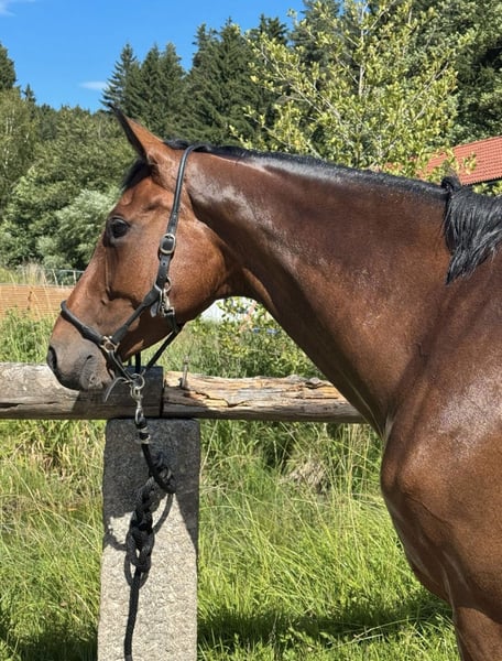 Ich suche für meine 2016 geborene Stute ein endgültiges, liebevolles Zuhause. Ich habe sie vor zwei Jahren verkauft – die neuen Besitzer wollten sie gerne im Turniersport sehen. Nach zwei Jahren wurde jedoch klar, dass sie mit dem damit verbundenen Druck und Stress nicht zurechtkommt. Dieses Jahr habe ich sie deshalb zurückgeholt. Sie durfte erstmal einige Wochen auf der Wiese entspannen und wird inzwischen auch wieder regelmäßig geritten. Über sie: • sehr sensibel, dabei stets bemüht, alles richtig zu machen • kein Pferd für den Turniersport • ideale Freizeitpartnerin für entspannte Ausritte, leichte Platzarbeit und gemeinsame Zeit • motiviert bei gymnastizierender Arbeit • beherrscht einige Zirkuslektionen, auch beim Extreme Trail war sie stets motiviert dabei • schmiede- und verladefromm • aktuell ohne Eisen, kennt es aber auf allen vieren Beschlagen zu werden, lief einige Zeit mit Eisen Gesundheit: Frühere Magenprobleme sind durch 24/7-Heufütterung und viel Weidegang vollständig ausgeheilt. Früher neigte sie aufgrund der Magenprobleme zum freien Koppen – inzwischen zeigt sie dieses Verhalten nur noch vereinzelt nach Kraftfutter oder Leckerlis. Hatte mit 3 Jahren einen Unfall, von dem sie sich vollständig erholt hat Charakter: • nicht „stutig“, sehr verträglich in der Herde, geht Stress eher aus dem Weg • menschenbezogen und möchte gefallen • kennt Halle, Reitplatz und hat diese bereits mit schweren Balken abgezogen– Kutsche ist daher auch vorstellbar • hat viel Go und ist durch ihre sensible Art kein Anfängerpferd • würde nie ihren Menschen runterbocken • kann bei starkem Druck zum Steigen neigen – seit sie im Mai wieder bei mir ist, hat sie dieses Verhalten jedoch nicht ein einziges Mal gezeigt Ich suche für sie einen Platz, an dem sie einfach ein geschätztes Freizeitpferd ohne Turnierambitionen sein darf. Wichtig ist mir, dass sie in ruhige, erfahrene und einfühlsame Hände kommt, die ihre Sensibilität zu schätzen wissen.