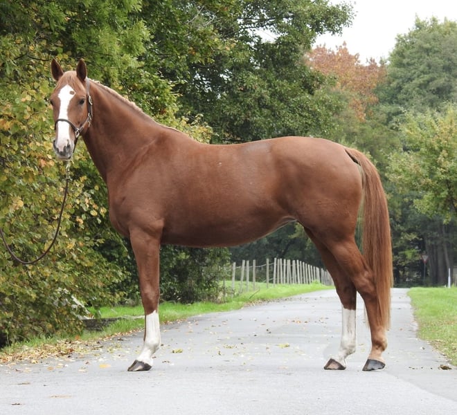 ❗️Due to the high volume of inquiries, we kindly ask for phone inquiries only.❗️ For sale is a 9-year-old state premium mare with a height of approximately 1.68 m. The mare has an absolutely warm character and comes directly from the breeder. She completed a good mare performance test and has since held the title of "State Premium Mare," which is why she has primarily been used for breeding afterwards. In pictures 7-11, you can see her first offspring, a 4-year-old Askari gelding, who already shows great talent in his first free jumping competition. The mare has been regularly ridden for leisure by amateurs and children until recently. However, we can certainly also envision her in sports or continuing in breeding. Without prior phone contact, we will not send any videos of our horses, so please refrain from requests like "please send video." Viewings are possible at any time. For further questions, we are available by phone at 0171 530 33 40. All rights to the images belong to Sport- und Freizeitpferde Wilfried Oestersandforth. Distribution or publication is strictly prohibited.