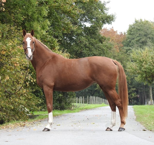 ❗️Wir bitten aufgrund des hohen Schreibaufwandes ausschließlich um telefonische Anfragen.❗️ Zum Verkauf steht eine 9-jährige Staatsprämienstute mit einem Stockmaß von ca. 1,68 m. Die Stute ist mit einem absolut herzlichen Charakter ausgestattet und stammt direkt aus Züchterhand. Sie absolvierte eine gute Stutenleistungsprüfung und trägt seit dem das Prädikat "Staatsprämienstute", weshalb man sie im Anschluss direkt und vorwiegend in der Zucht eingesetzt hat. Auf Bild 7-11 ist ihr erster Nachkomme, ein 4-jähriger Askari-Wallach zu sehen. Dieser zeigt bei seinem ersten Freispringwettbewerb bereits großes Talent. Die Stute wurde regelmäßig bis zuletzt von Amateuren und Kindern freizeitmäßig geritten. Wir können sie uns durchaus aber auch im Sport oder weiterhin in der Zucht vorstellen. Ohne vorherigen telefonischen Kontakt werden wir keine Videos unserer Pferde verschicken, daher bitte von Anfragen „bitte Video schicken“ absehen. Besichtigungen sind jederzeit möglich. Für weitere Fragen stehen wir gerne telefonisch unter 0171 530 33 40 zur Verfügung. Alle Rechte an den Bildern gehören Sport- und Freizeitpferde Wilfried Oestersandforth. Eine Verbreitung oder Veröffentlichung ist strikt untersagt.