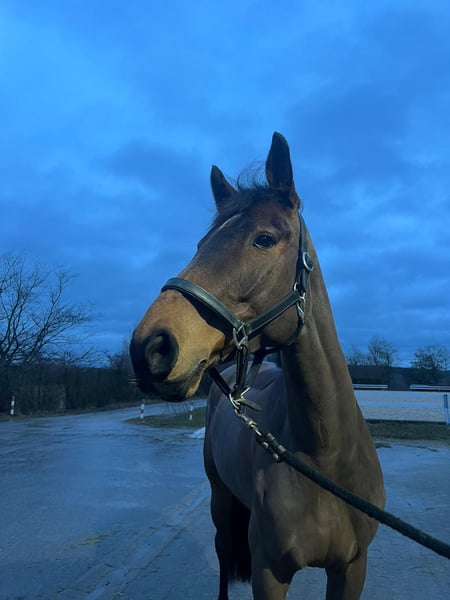 For sale is an exceptionally well-behaved and talented 9-year-old mare, sired by Ogano and Cantando. At our stable, she goes by the name Ocala and impresses not only with her sporting qualities but, above all, with her outstanding temperament. Ocala is an elegant dark bay mare with a beautiful conformation and a height of approximately 1.73 m (17.0 hh), making her ideally suited for both amateur and professional riders. She excels over fences with her excellent manners and natural talent. Always motivated, eager to learn, and with a lively, energetic nature, she brings plenty of enthusiasm and joy to her work. Her most remarkable trait is her exceptionally calm and brave demeanor: Ocala is an absolute reliable partner. While she can occasionally be a bit nervous in certain situations, she remains consistently well-behaved and predictable. For this reason, she is not suitable for beginners but is better suited for riders with some experience. In daily handling, she is exemplary: She is calm in the outdoor and indoor arenas, and goes willingly into the lunging circle, paddock, and turnout. Additionally, Ocala is farrier- and loading-friendly. She has already demonstrated her sporting potential successfully: She has competed up to 1.30 m at shows and has placed at 1.25 m. From early on, she has shown above-average quality, ability, and a positive attitude toward jumping. We are convinced that, with the right rider and further training, Ocala has the potential to progress into the higher levels of sport. She is looking for a partner who will form a true team with her and continue to support her development. An honest, performance-oriented, and exceptionally brave sport horse with great potential.