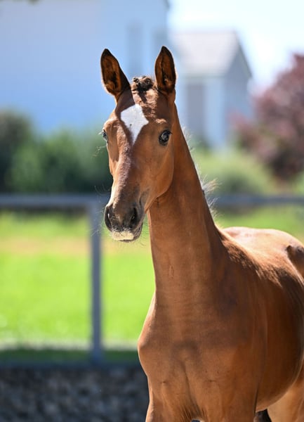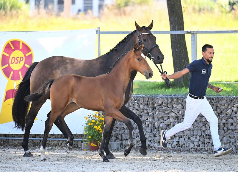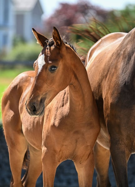 Ella Lou ist ein außergewöhnlich menschenbezogenes, neugieriges und freundliches Fohlen. Mit korrektem Exterieur und toller Bewegungsqualität ausgestattet, wurde sie im August registriert und prämiert. Mit Sicherheit ein Rohdiamant für spätere Erfolge im großen Viereck.