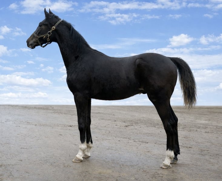 Stylish dressage stallion with excellent talent and outstanding pedigree. Born on May 5th, 2025, he is already accustomed to being tied, led, groomed, and hoof care. He has also been transported in a trailer, during which he proved to be very well-behaved. Currently, he lives in a small stallion herd in an open stable. Sundance is very gentle in handling and impresses with his beautiful basic gaits. Correct conformation, proper legs, a lovely coat, and a balanced temperament. If purchased, he is welcome to remain with us in the stallion herd (at standard boarding fee). Feel free to contact me if you would like to meet him or have any questions. *The background of the photos has been edited.