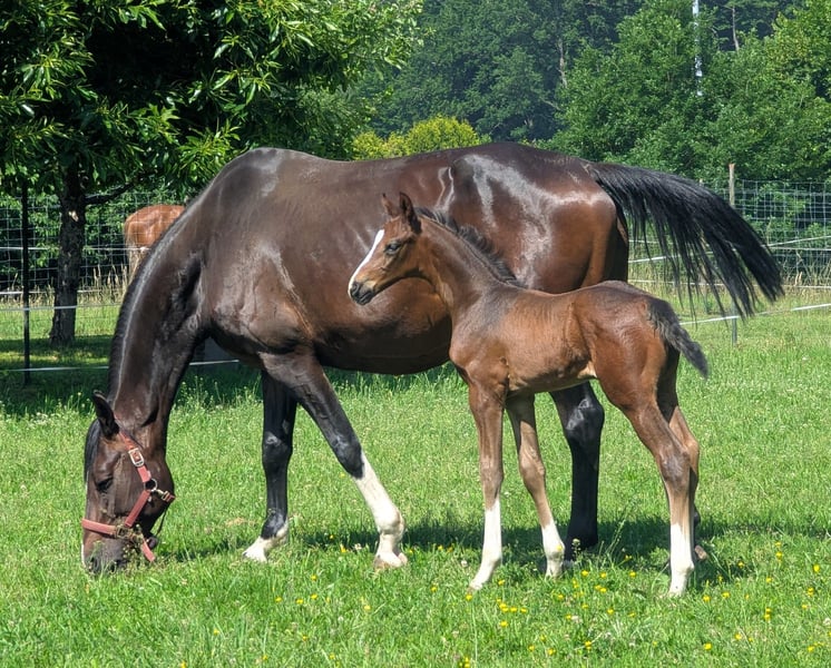 We are seeking a nurturing 5-star home for our highly promising DSP colt (born June 2025). This foal combines everything one could wish for in terms of both breeding potential and athletic future. At the foal inspection, he was awarded the winner's title amidst strong competition, impressing with his outstanding quality. His sire is the renowned Sir Heinrich, former Bundeschampion of the 6-year-old dressage horses and multiple S-level winner. He descends from highly successful dressage bloodlines and was a World Championship participant in 2014. This foal also reflects the inherited strength, rideability, and charisma characteristic of his pedigree. On the dam’s side, the Floratio x Dancier lineage promises a high performance potential and enormous talent. He possesses powerful basic gaits, with particular emphasis on his ground-covering walk. Additionally, he demonstrates a very elastic trot with significant hind leg activity and expressive, energetic movement, as well as a strong uphill tendency in canter. A true gem for dressage and a highly interesting candidate for licensing as a stallion! A solid foundation and a typy appearance complete his potential. But even at this young age, his temperament already impresses. He displays a calm, trusting nature and is very affectionate. He is familiar with the foal’s basic training (Foal-ABC) and approaches everything with calm curiosity and confidence. The price reflects his quality, but for us, the well-being of the horse comes first. A personal introduction to the foal is always possible and highly encouraged. We kindly ask for serious inquiries only; video requests without personal contact will be ignored. Feel free to contact us by phone for further questions or to arrange a viewing.